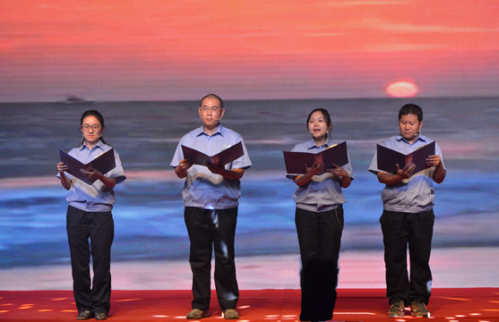 活动以集团公司百名员工共唱《我和我的祖国》快闪视频的播放开场,按“不忘初心担使命”、“勇立潮头搏激流”、“同心逐梦谱新篇”、“砥砺奋进铸辉煌”四个篇章依次展开。一首首满怀深情的赞歌重现伟大祖国浩瀚进程中的历史瞬间、描绘出辽阔土地上的锦绣山河、传递着中航建设人的自豪之情、展示出未来美好的幸福景象。一个个满怀深情的朗诵者相继登场,将中航建设锐意进取,志存高远的精神贯穿始终。演出中,马博足球的发展成就得以展示,中航建设工作者的人文情怀得到抒发,台下观众沉浸在对中航建设的热爱和为祖国庆生的喜悦之情当中。