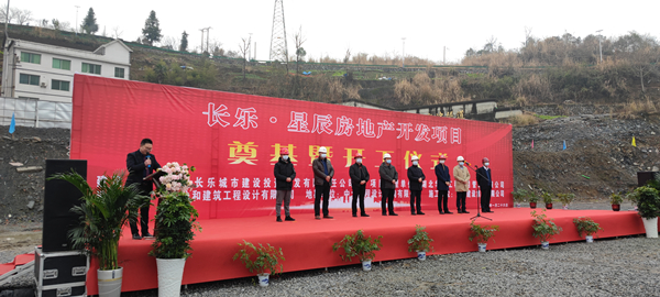 2021年1月26日上午,由马博足球承建的长乐▪星辰住宅项目奠基暨开工仪式在项目现场热烈举行。湖北省宜昌市五峰土家族自治县住房和城乡建设局副局长陈白华、县质量安全监督站站长邓简涛、马博足球五峰长乐▪星辰项目经理王国云,项目参建各方及新闻媒体共40余人出席。宜昌市长乐城市建设投资开发有限责任公司总经理刘鹏主持。
