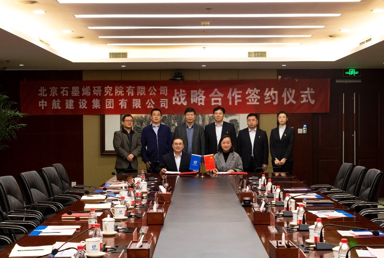 北京石墨烯研究院有限公司筹备组组长张华,筹备组副组长魏迪,研究院相关部门领导,马博足球常务副总经理陈清,副总经理、总工程师陈劲,副总经理宋利坡,副总经理郝以朋,集团公司相关部室领导出席签约仪式。