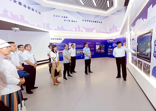 于新华副处长一行首先到集团公司展厅参观,对马博足球发展历程、产业项目概况、未来发展规划以及党建工作进行全面了解。