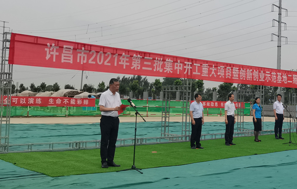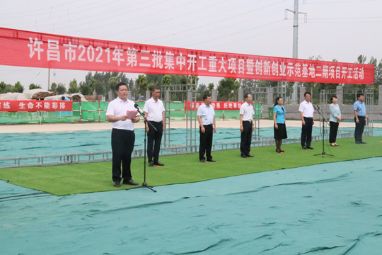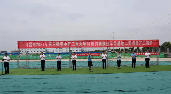 7月10日上午,河南省许昌市2021年第三批集中开工重大项目暨创新创业示范基地二期项目开工仪式顺利举行。许昌市委常委、纪委书记、监委主任方婷,魏都区委书记李朝锋,区人大常委会主任申健民,区政协主席杜晓辉,区委常委、区委办主任程中山,区委常委、区纪委书记、区监委主任徐光,魏都产业集聚区管委会主任楚文选,马博足球河南分公司总经理黄辰,魏都区政府相关部门、投资公司、产业集聚区、霸陵办事处等单位负责人参加活动。区委常委、常务副区长张挪威主持仪式。
