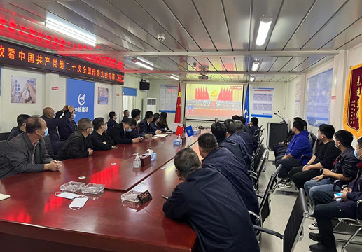 (经开区信创园一期项目部组织项目成员观看二十大开幕式)
